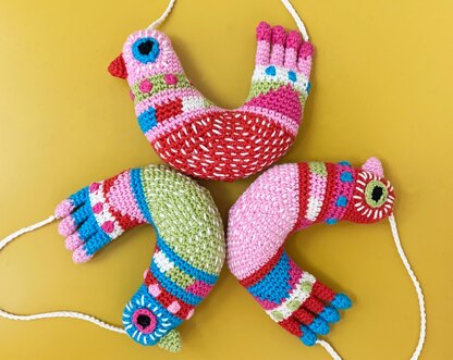 Speckled bird decoration crochet pattern. Includes details on all the colour colourways. This pattern is written in UK & US crochet terms (you will get both in the same file). Designed in the amigurumi style and worked in a continuous spiral. It is a very clear pattern with lots of photographs.
