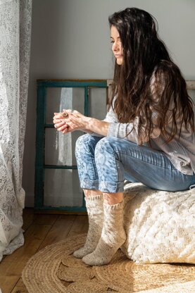 MaterialsYarn (1-Fingering) S(M,L,XL) 311 (390, 467, 545) meters/92 (115, 138, 161) gramsAn overage of 15 % is calculated in the yarn requirements. More yarn may be needed depending on your tension, so make sure to check your gauge. I used PFB from Urso Yarn co Color : Licorne