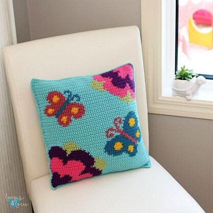 The Spring Butterfly Pillow is perfect to add to your spring home décor. This pillow is worked up in two panels which are attached together after with a pillow form or stuffing inserted. The front panel is worked in intarsia/tapestry crochet technique following a graph and the back in SC rows.