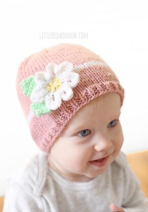 This adorable Spring Daisy Flower Hat Knitting Pattern is so cute and perfect for spring. The light worsted weight or DK yarn makes for a lightweight hat that's perfect for the season and the cute little flower and leaves are much easier to knit than you think (plus the pattern includes step by step photos!)