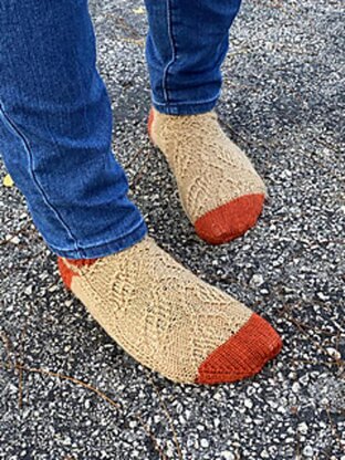 Spring is nearly here, and we all need a little more joy in our lives right now...these socks were drafted somewhat optimistically towards the end of the winter thinking about the promise of Spring, and although that is looking a little different now than a lot of us anticipated, hopefully this delicate leafy pattern can bring a little light to our days. After a few rows the intricate leaf pattern will start to emerge and the finished product will certainly give you a spring in your step!