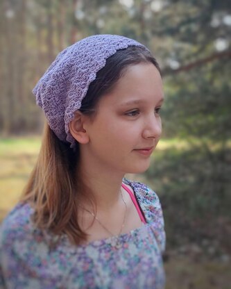 This kerchief is one size, that should fit most teenage/adult heads (see photos for measurements). However if you want a smaller/bigger size, follow instructions at the end of the pattern. It will allow you to make the kerchief any size you want, with (almost) any yarn you have.
