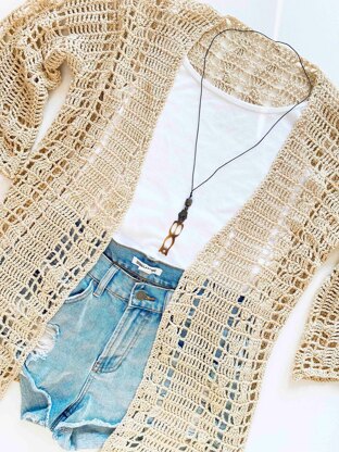 It's the perfect transeasonal cardigan to wear in Spring and Autumn and has an easy 3 row pattern repeat ( link to pattern to a video tutorial for pattern rows ) in long treble stitches, so it works up super fast ! You could also use it as a beach cover up over your swimsuit in summer.