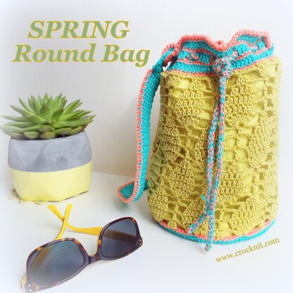 SPRING Round bag has a vintage lace pattern which is reminiscent of the first spring leaves. A lightweight bucket bag with the added benefit of a lining to keep its shape.