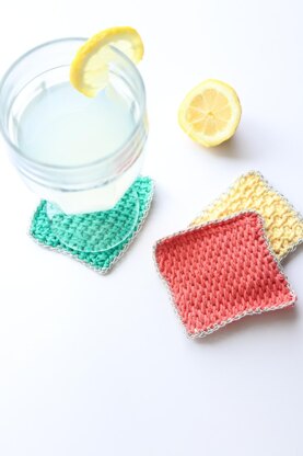 This pattern is for a spring set of Tunisian crochet coasters with a touch of sparkle. It’s The perfect coaster pattern to practice the basic Tunisian crochet stitches while doing some stash busting.