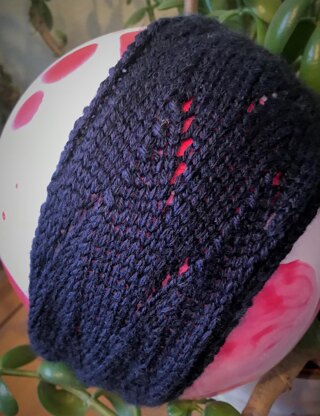 The Spring Tide headband has a motif of gentle waves created with a double pattern of 12 stitches with 3 stitch stockinette borders.