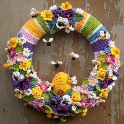 Crochet a beautiful wreath celebrating my favorite season: spring. Full of spring flowers and buzzing bees, this wreath is sure to bring a smile to your face and make you long for warm spring days!