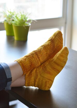 The nice thing about socks is that you can try them on as you knit them and make any modifications needed – for example, you can do fewer gusset decreases to account for a larger foot vs. ankle circumference. Having the pattern on top of the foot (the instep) and stockinette stitch on the bottom also helps provide more ease, and this sock can also be modified quite easily in terms of foot length. If you are new to sock knitting, I recommend pay more attention to your ankle circumference when deciding which size to make. You will want to err on the side of choosing the smaller size option so that the cuff hugs your ankle. Be sure to also use a stretchy cast-on to start things off – I recommend the Long-Tail (Slingshot) cast-on method which produces a very nice-looking elastic edge!