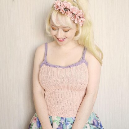 Springy is a simple singlet design featuring contrasting I-cord straps and cabled edging for a feminine feel. Depending on yarn choice, the tank top can be great on it’s own for mild weather or as a warm base layer under a cardigan.