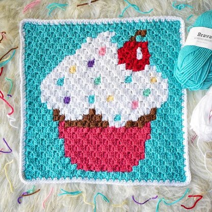 Welcome to the Sweet Treats Blanket crochet along! I am so very excited to be hosting this 12 week crochet along with yarn and prizes by We Crochet! Square #1 is the Sprinkled c2c Cupcake Crochet Blanket Square!