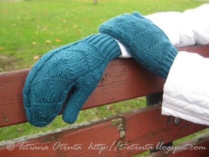 The fingerless gloves/mittens are knitted in the round from the cuff to the top. It is a good project for beginners and fast funny knit for advanced knitters.