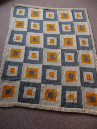 This is a pattern for Squares Blanket, originally published in Simply Knitting issue 157. It is a simple intarsia, knitted in separate strips with a moss stitch edging. The yarn is a soft chunky yarn which knits up quickly.