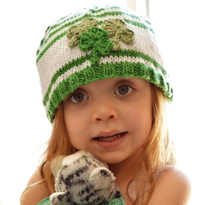 *The shamrocks were crocheted and attached to the hat when it was finished. A VIDEO tutorial is provided along with the pattern for the shamrocks. Leave off the shamrocks and knit the hat in any color combination and for any occasion. This hat looks adorable on children of all ages!