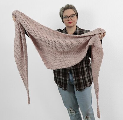 WINGSPAN 98” [249 cm] after blocking │ DEPTH AT CENTER 23” [58.5 cm] (Bulky); more sizing available for additional yarn weights within pattern