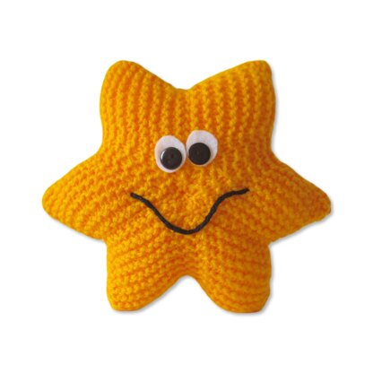 Knit a Starfish using only three stitches: knit, a kfb increase, and a k2tog decrease. These combine to make garter stitch diamonds that are sewn together. If you use washable acrylic yarns this could be used as a bath toy, or knit one in glittery yarns to use as a celestial decoration. Designed by Amanda Berry @fluffandfuzz, the star is knitted in acrylic DK yarn on single pointed needles (not in the round). For beginners and above, other techniques used include seaming in mattress stitch to finish.