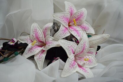 This pattern is for the full lily flower and bud. It can be crocheted in two sizes (Large: 6 inches (15cm) and Small: 4 inches (10cm)) by changing the hook and thread size. This pattern shows step by step guide that includes painting and assembly.