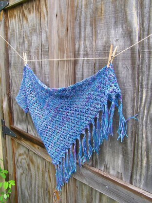 Welcome to your perfect warm weather shawl! Starlight and Diamonds is knit using a loose, airy lace pattern and will make a perfect warmer weather accessory. It is worked from one corner to the bind off row, with the fringe using up every last bit of yarn. Only one skein of yarn is needed, making this the perfect pattern for that single skein of luxury yarn.