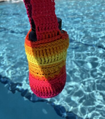 This is the perfect little bag to carry your water bottle around a little more easily while you're out and about on a hot day. I used a 4mm hook for a regular sized 32oz water bottle, and it was a perfectly snug fit. However, this pattern is easily adaptable. If you want a looser fit so that you can stash a snack or your license in it, upsize to a 5mm. If you have a more slender bottle, you can downsize the hook.