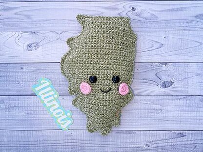Our finished State of Illinois Kawaii Cuddler® is 11.5″ x 7.5". Hook size, yarn choice, and crochet tension will affect each individual result.