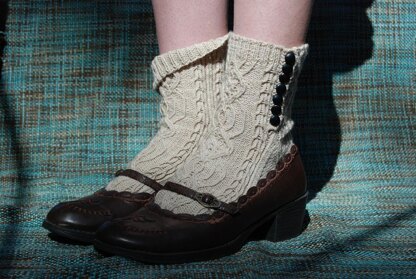 Steampunkery features bavarian twisted sts and functional buttons. Shown in Vanilla but are amazing in Garnet and Charcoal as well. A choice of white or black buttons come in the current kit.