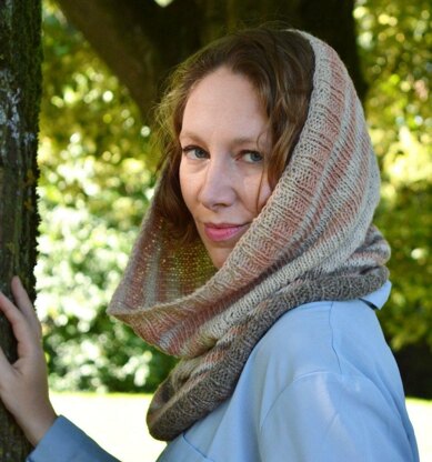 This cowl is available in 2 sizes, S (L), pictured is size S. Finished dimensions: height of 42.5 cm (16 ¾ inch) and 73 (93) cm (28 ¾ (36 ½) inch) circumference, measured after blocking.