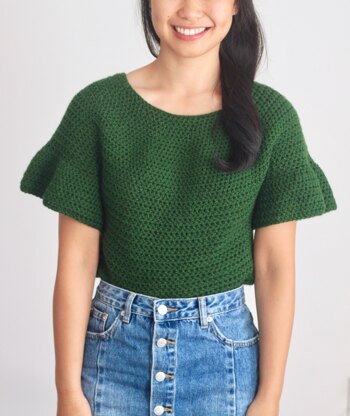 This modern ruffle sleeve top can be worn year-round in winter, autumn, spring or use aran cotton yarn for a breezy, fun summer ruffle top! The Stephanie crochet sweater top has ruffled short sleeves and a round neck. Worked from the neck down with no extra seams, this pattern gives you the freedom to crochet the perfect fit and length for your body. This crochet top pattern is also accompanied by a video tutorial :)