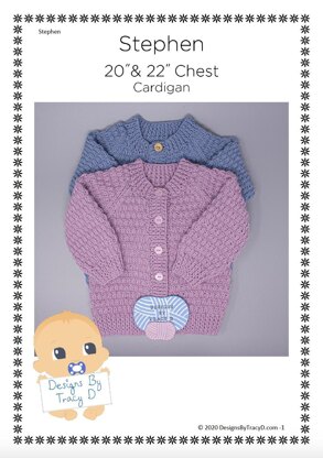 Stephen is a unisex Baby Knitting Pattern for a beautiful cardigan, It is 2 larger sizes of my popular Calum pattern and is made using DK yarn with 3.25mm & 4mm needles and will fit a 20" and 22" chest (finished size) 150g of DK yarn required for each size
