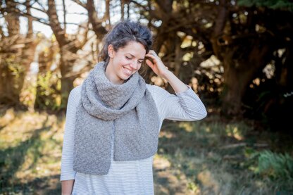 This scarf was my first ever pattern, and it was designed to teach a beginners knitting class. In fact it was the pattern I sent knitters away with once we had spent the afternoon drilling out knit and purl stitches. I’ve taken the original short, skinny scarf that was designed not to intimidate knitters into a scarf that I actually want to wear. The main factor? Squish. And a lot of it. I reworked the scarf to be almost 6 feet allowing a good wrap around the neck and shoulders, and it is wide, plenty of width to be worn more like a shawl if wanted. The stitch pattern is a classic one, encouragingly memorable and comfortably exercises the change between knit and purl, and in Elsawool’s Woolen-Spun? The knitted fabric is so so buttery soft, light and warm.