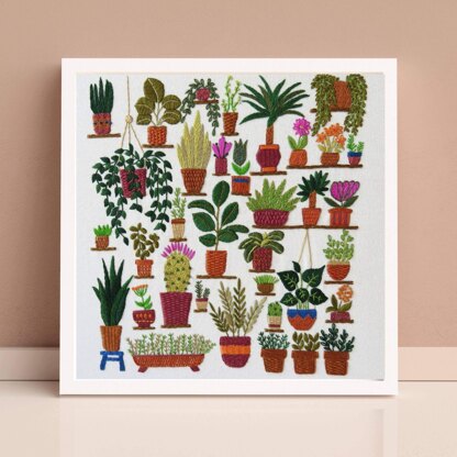 Beautiful, Colourful and Fun Hand Embroidery Designs Discover your next stitch journey.\n\nHere at Stitchdoodles we are all about creativity. Sitchdoodles was created in 2019 after I was finding it difficult to find hand embroidery patterns that were exciting and a bit different from the usual. Wanting to combine our love of hand embroidery stitches, traditional sampler techniques as well as quilt designs(!) I decided to come up with something myself and it has evolved into an array of wonderful and colourful designs that will hopefully inspire and excite people to pick up a needle and get 'happy stitching’.\n\nWhat you will receive:\n• This pattern is available as a PDF download so you can access the pattern as soon as you would like.\n• Each pattern comes with details on the colors, threads, and materials required.\n• Easy to follow instructions are given along with full-color photos.\n• All templates are provided actual size.\n\nEscape to a wonderful world of plants with this modern hand embroidery sampler. There are 35 plants to enjoy stitching in this design and the end result is a striking design any plant enthusiast would love to own.\n\nThe pattern details the floss and stitches I used in the example photo but feel free to make your own choices – it’s up to you! The Design is approximately 7.5x8 inches.
