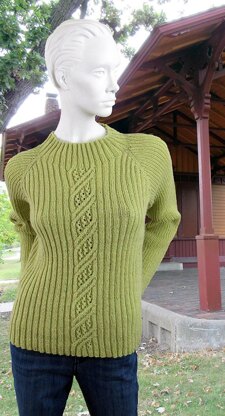 Worked from the top down, short-rows are used to shape the neck while the cable pattern is begun at the center of the back. The body and mock neck are worked in K2, P2 Rib while the sleeves are worked in K1, P1 Rib.