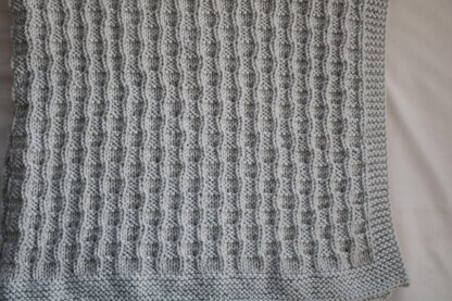 Blanket is easy to make, hand - knitted in a simple stitch(only Knit & Purl stitches.) It is reversible. Back side of the blanket is shown in the last picture.