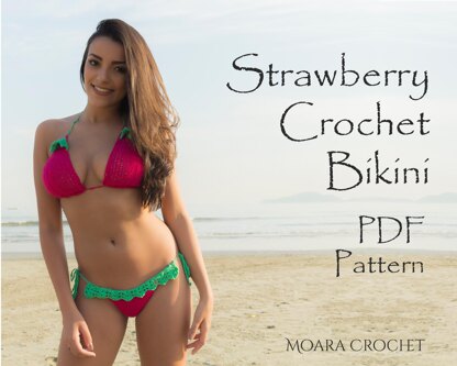 Make your own strawberry bikini with this easy crochet bikini pattern. Step by step tutorial filled with photos to help you along the way. Pattern made using light 4 ply yarn to make your bikini top light weight and cool for those hot summer days.