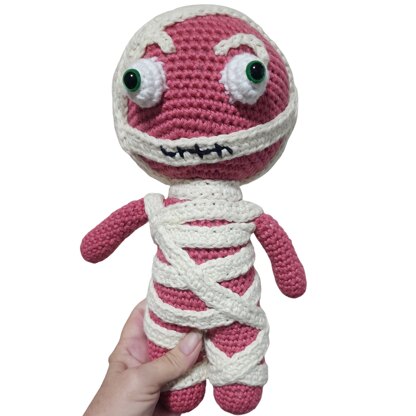 This digital crochet pattern (PDF) includes step-by-step instructions and photo references to help you create your own handmade Strawberry Mummy plush. Great for confident beginners and experienced crocheters alike!