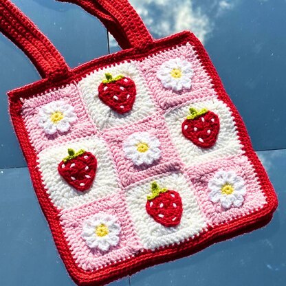 Get ready for summer with our Strawberry Granny Square Tote Bag Crochet Pattern! Use it as a market bag, beach bag, shoulder bag, or simply as a cute statement piece for carrying your things in style! This crochet strawberry bag pattern can be customized for both size and shape to create your perfect bag for any occasion.