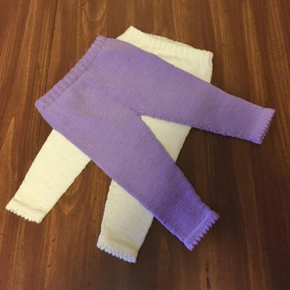 These leggings are worked from the top down. Adjustments could be made to fit an infant size. They are a slim fit with short rows in the back for the bottom. They have an elastic waist. The yarn used has 7% elastic.