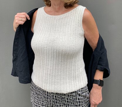 Der gerade Schnitt und der klassische Rundhalsausschnitt machen es vielseitig kombinierbar. Perfekt für Anfänger*innen. Dieses luftige, zeitlos schöne Top wird im einfachen Rippenmuster gestrickt und ist dadurch besonders angenehm zu tragen. Es passt sich weich an die Körperform an und lässt sich vielseitig kombinieren — ob lässig zu Jeans, elegant zum Rock oder als sommerliches Layering-Teil.