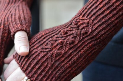 Instructions include a charted pattern for the back of the hand. Knitters should be comfortable working from a chart and working twisted stitches. Pattern instructions are 3 pages long and include tips on working cables without a cable needle.