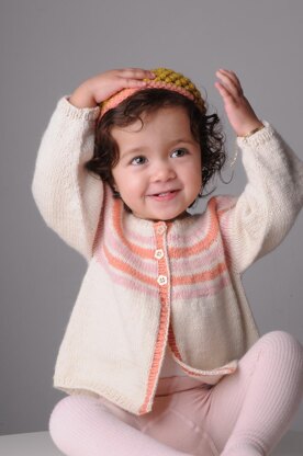 This is a super-simple baby cardigan with a small amount of colourwork to give it an interesting twist. The cardy is knitted from the top down and gradually increases over the yoke before splitting for the sleeves and body. It’s a really simple way of knitting and I thoroughly recommend it if you’ve never done it before – especially as it limits the amount of sewing up you need to do!