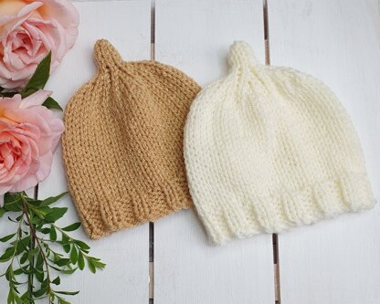 Knit an adorable baby elf hat with a little point on the top, with this PDF knitting pattern. The easy pattern is written in three sizes from Newborn to 12 months old, and gives you options of knitting it in a solid colour, or with stripes. Quick to knit, using Aran (worsted) yarn and size 5mm (US 8) needles. The hat is knit flat (not in the round) so it is simple for new knitters to make. This is a classic style hat that you will be able to knit up quickly as your baby grows. You could add a tassel to the end, or even a pompom, ribbons or a long plait. Knit it in red and green for Christmas, or keep it simple. The possibilities are endless!