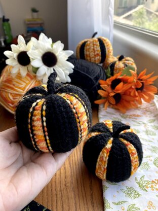 Make 4 unique pumpkins with this 1 pattern! The pattern is written so that the front and back sides both work and you can simply swap the two colors to create 4 different looks.
