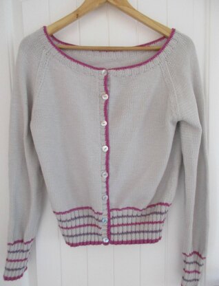 This is a pattern for a striped rib cardigan, originally published in Lets Knit. It is a simple garment to make suitable for beginners as long as you can increase and decrease. Length 54-60 cm.