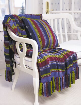 Stripes and Checks Afghan and Pillow in Patons Decor - Downloadable PDF