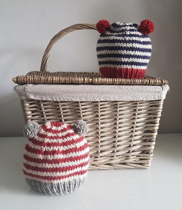 A lovely stripy baby's beanie hat PDF knitting pattern, for ages 0-6m; 6-12m and 12-24m.