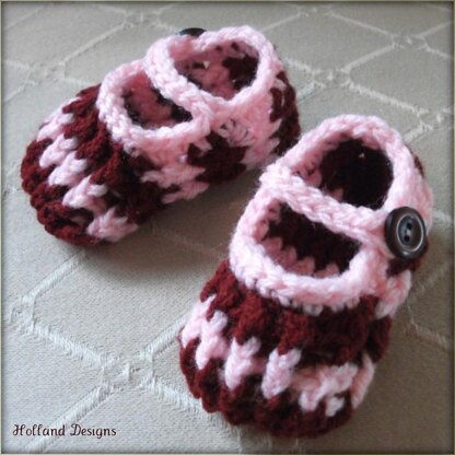 Crocheted using DK or light worsted weight yarn in 2 colors of choice. You'll also need 2 buttons and needle and thread.