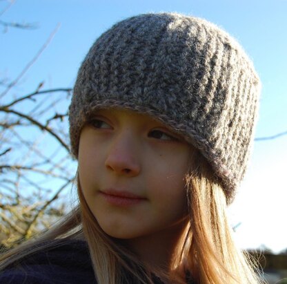 Its subtle patterning makes it a great unisex knit. My grey sample has a feminine twist provided by a soft-coloured (and, of course, subtle-toned) edge to the brim (this was a scrap of very beautiful hand-dyed hanspun). The construction method offers lots of options for using up scraps of colour for two colour versions or completely multicolored and totally unsubtle versions.