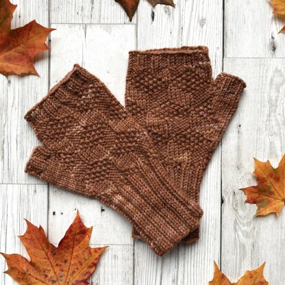 As soon as the first chill of autumn is in the air, I grab my fingerless mitts. Fingerless mitts are perfect for protecting your hands from the cold while still allowing you to get on with your life – it’s a lot easier to use your phone or sort your change while wearing fingerless mitts than full mittens or gloves! These fingerless mitts feature the textured Sugar Cube pattern on the backs of the hands; the pattern is scaled between sizes, which means it is always in proportion with the rest of the mitt.