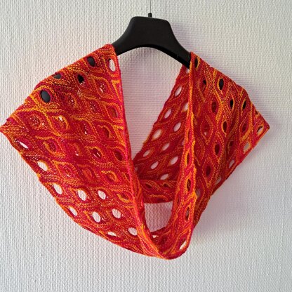 This colorful cowl is a light and airy accessory – suitable for summer or early autumn. It looks especially good when knitted with variegated yarn because it shows off the short row construction.
