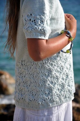 Difficulty level: Medium (co, k, k2tog, kfb, p, pfb, ssk, skp, sl1-k2tog-psso, bo, knitting in the round on circular needles, st st in the round, simple lace, M1R, M1L)