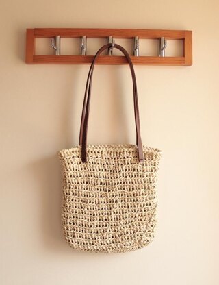 I used 7 mm crochet hook and added leather straps to create a classic tote design.