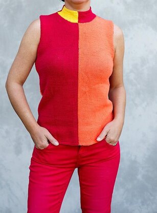 Ein farbenfrohes Sommertop mit Stehkragen, der im Nacken geknöpft wird. Die Anleitung enthält eine deutsche und eine englische Version.